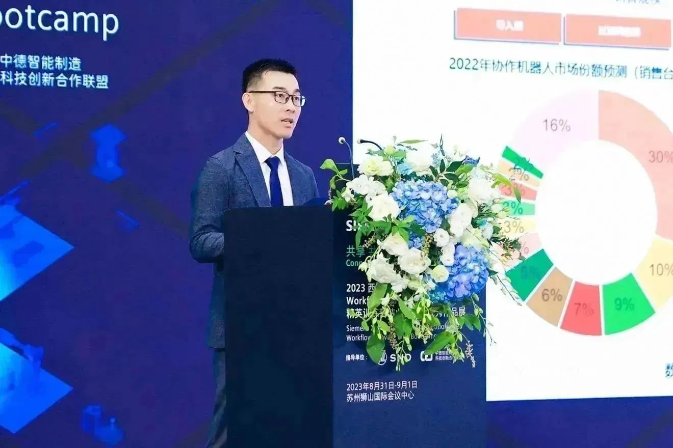 西门子是全球领先的科技企业之一,是全球工业数字化进程的重要参与者与引领者。遨博是一家专注于协作机器人研发、生产和销售的国家高新技术企业。西门子与遨博的合作有着良好的基础。今年9月,遨博受邀参与了西门子Xcelerator Workflow Canvas(工易魔方)生态伙伴大会,并成为了首批工易魔方生态联盟企业单位。西门子工易魔方成功应用于遨博的柔性生产线,以适应多变的制造需求。西门子(中国)有限公司执行副总裁、西门子研究院院长朱骁洵博士表示“双方的合作是双向的赋能,携手向前,共建科技创新生态。”