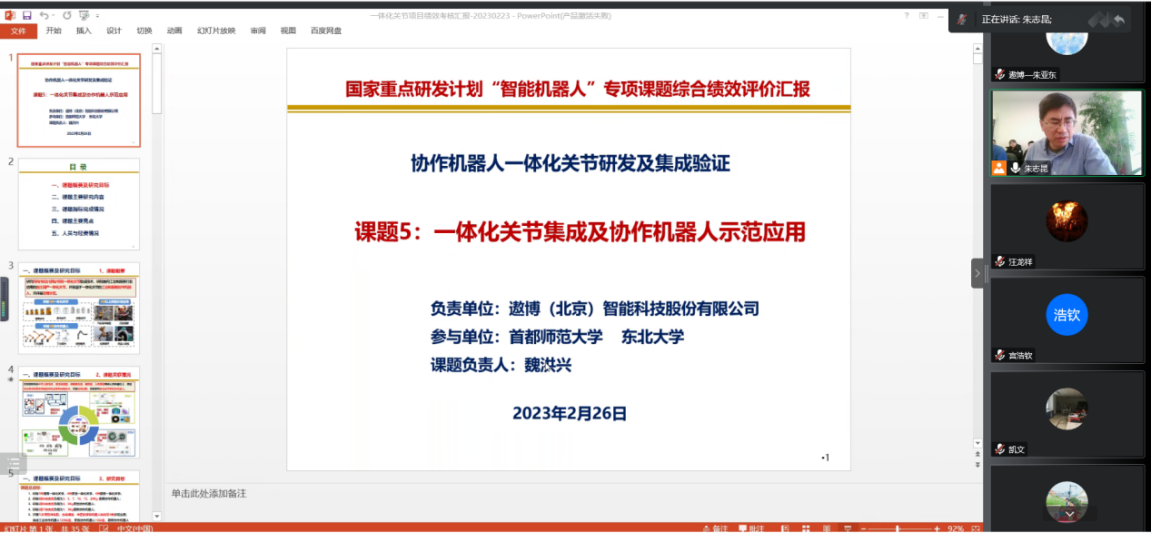 2023年2月26日上午,由遨博(北京)智能科技股份有限公司牵头承担的国家重点研发计划“智能机器人”重点专项“协作机器人一体化关节研发及集成验证”项目课题综合绩效评审会以线上、线下相结合的形式召开,线下会议地点在北京举行。